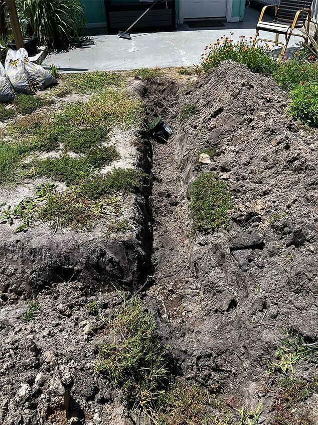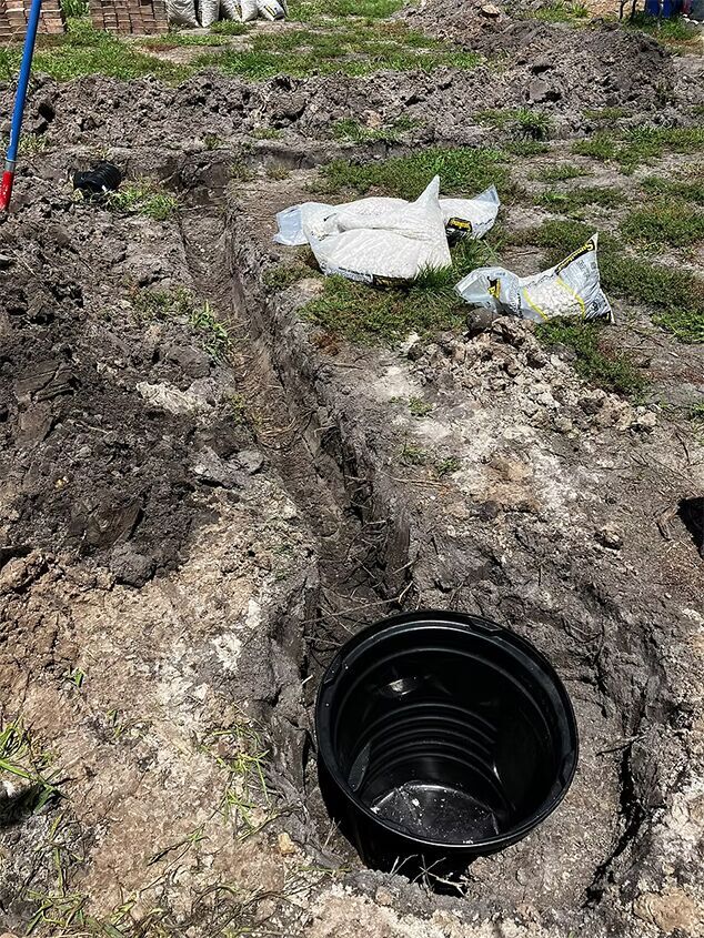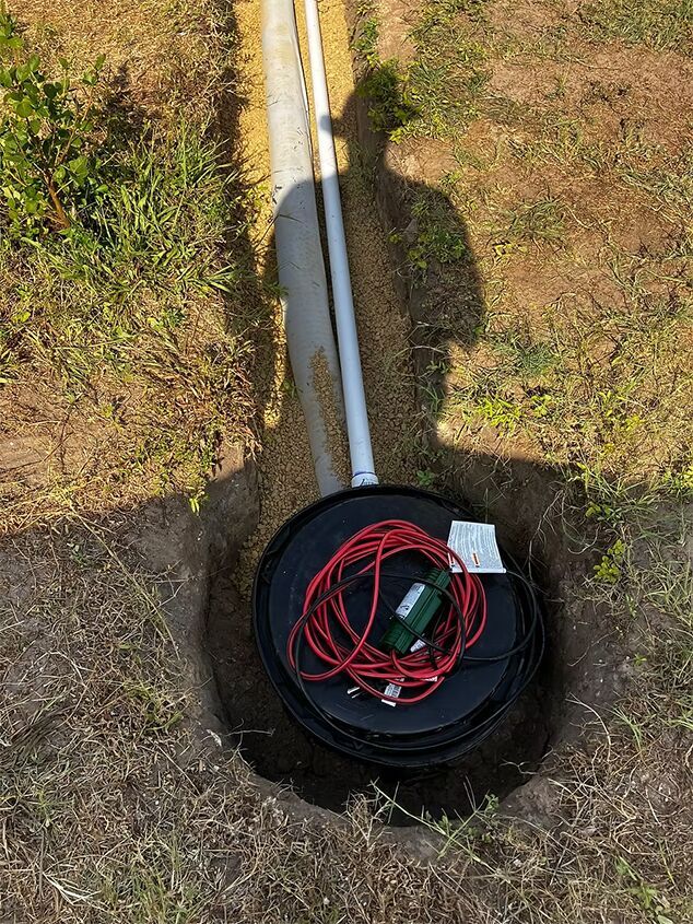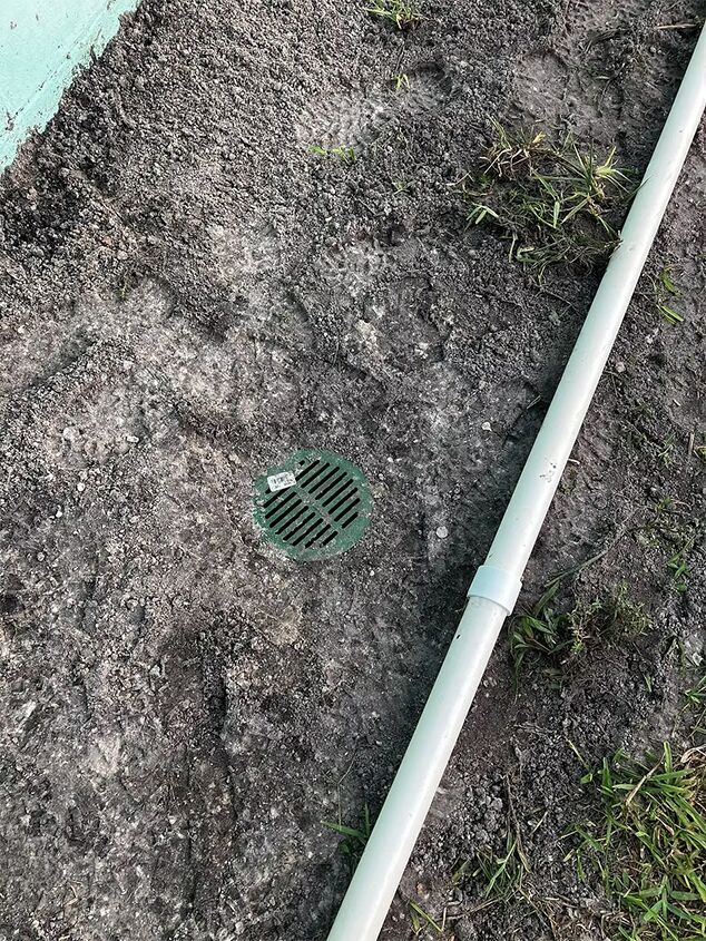 The drain is installed on a gentle downward slope (about 1 inch per 8 feet) to maintain steady water flow toward the outlet.